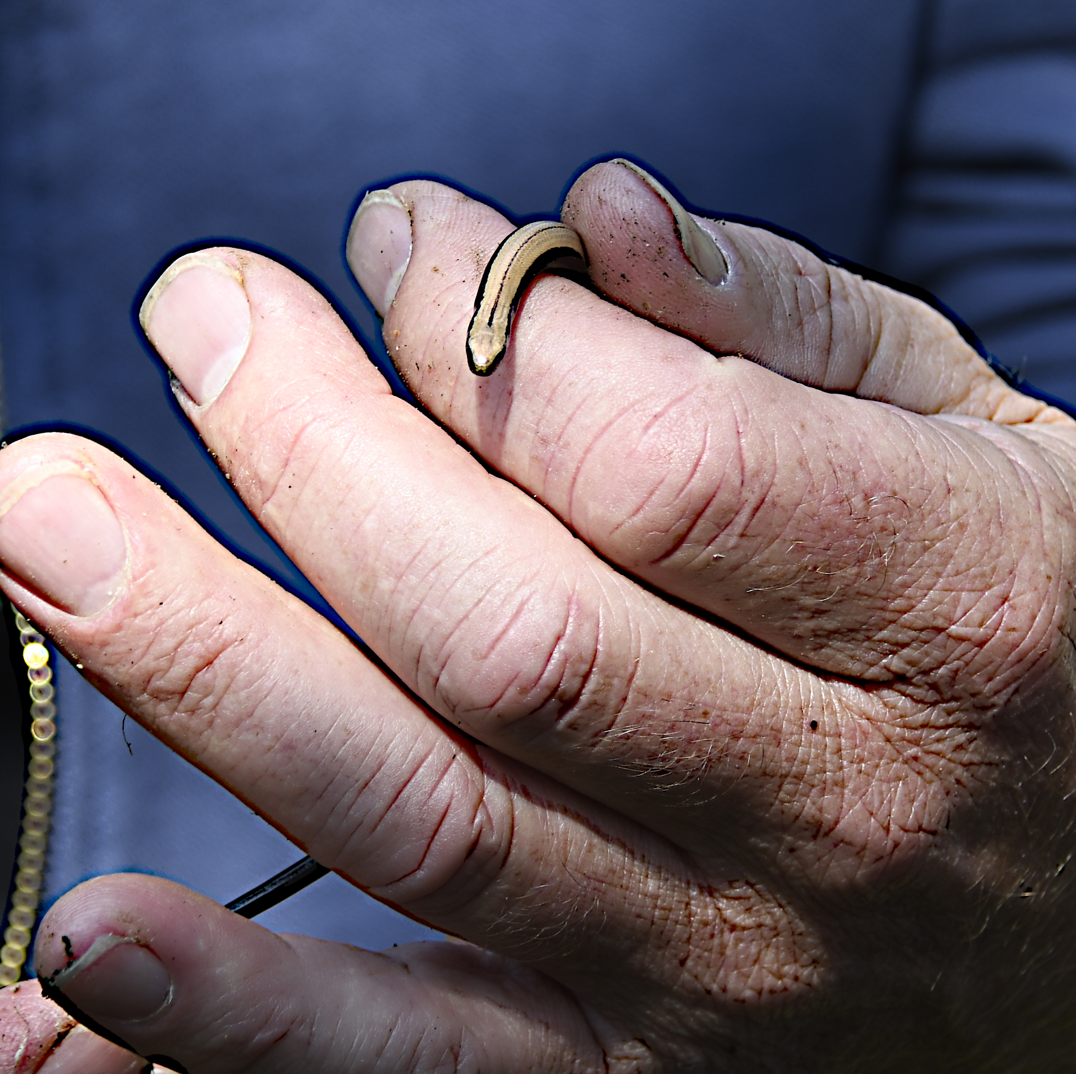 In seinem Garten hat er zwei verschiedene Schlangenarten und zwei verschiedene Eidechsenarten beobachtet. Die Trockenmauern, die er in verschiedenen Teilen des Gartens gebaut hat, sind speziell für sie gestaltet.